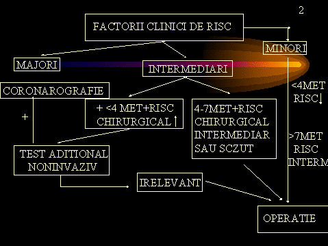 Daca capacitatea de efort este intermediara , 4-7MET sau buna >7 MET, iar operatia are un risc intermediar sau scazut se va efectua interventia.