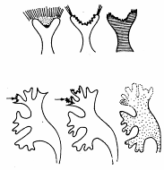 Exista, de regula, 14 papile: 6 superioare, 4 intermediare si 4 inferioare dispuse într-un plan anterior si altul posterior. Fiecare calice are o cavitate ca o pâlnie, care este fixata de una sau mai multe papile. Se disting trei grupe caliceale mari: superior, mijlociu si inferior, alcatuite fiecare din calice mici.