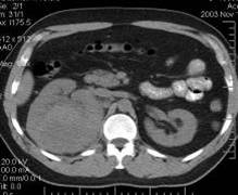 POLICHISTOZA RENALA Întreaga masa renala este înlocuita progresiv de numeroase formatiuni chistice. Boala se depisteaza la maturitate (40-50 ani), în faza de insuficienta renala si hipertensiune arteriala severa. Urografic, rinichii sunt mari, cu contur neregulat, boselat, iar sistemul pielo-calicial este complet distorsionat, cu secretie întârziata, simetric, bilateral. Arteriografic, arterele intraparenchimatoase sunt gracile si distorsionate, circulatia este saraca, în schimb arterele renale sunt normale pâna la hil. Aspectele ecografice si CT sunt de asemenea, caracteristice (examenul CT depisteaza mai ales hemoragia intrachistica).
