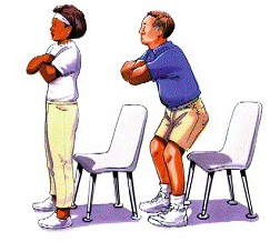 incet, cu repaus la capat. Ridicarea de pe scaun se incearca similar, atentie a