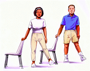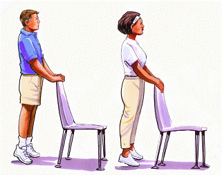 Ridicari pe Gambe ___ X pe zi din saptamana ___ Stati cam la un pas departare in spatele scaunului, cu picioarele la nivelul umerilor si genunchii in usoara flexie. Spatele drept, trageti umerii spre spate. Folosind scaunul pentru echilibru, ridicati calcaiele de pe sol, impingand pe partea anterioara a piciorului. Pauza 1 secunda in aceasta pozitie, apoi coborati lent in pozitia de start. Serii de 10-12 repetitii, pauza de 30 secunde apoi repetati.