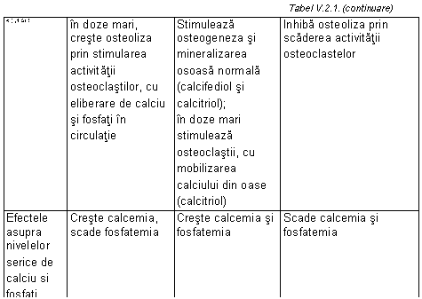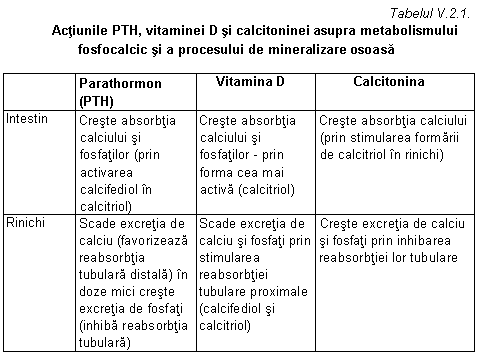 Dupa cum se observa in tabelul V.2.1, vitamina D actioneaza la toate cele nivele intestin, rinichi, oase pentru a mentine homeostazia fosfocalcica.