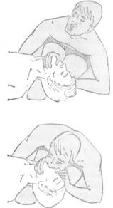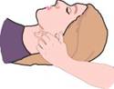 Înclinati capul victimei pe spate. Ţineti o mâna pe fruntea victimei si cealalta mâna sub barbie