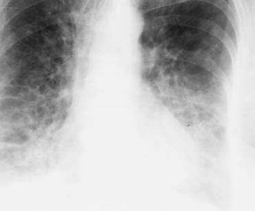 atunci cand presiunea venoasa atinge valoare de 30 de mm Hg apare edemul intraalveolar: opacitate alveolara uni- sau bilaterala perihilara (edem pulmonar);
