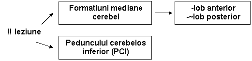 leziune lob floculo-nodular -Leziuni de paleocerebel -tulburari de mers si ortostatiune cu cadere si deviere ipsilaterala