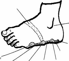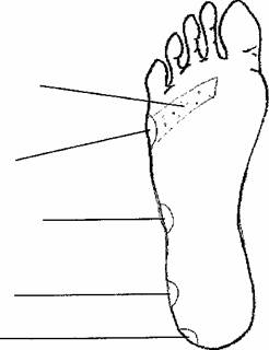 Punctele reflexe pentru antebrat, gamba, brat, coapsa, sunt situate pe fetele laterale exterioare ale labelor picioarelor, imediat sub articulatiile falangelor.