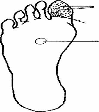 Totalitatea punctelor reflexe ale creierului se gasesc pe degetele mari ale picioarelor. Pe degetul mare de fa piciorul drept se gaseste zona reflexogena a emisferei stangi cerebrale, iar pe degetul mare de la piciorul stang, se gaseste zona reflexa a partii drepte a capului.