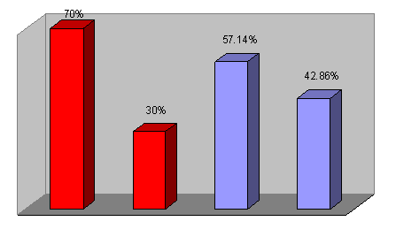 Au fost analizati un numar de 30 bolnavi cu BC (70% F si 30% B) cu CDAI = 200-450 si 30 bolnavi cu CU ( 57,14% F si 42,86% B ) avand CDAI>5, EI>7 si DAI>4. (fig.1)