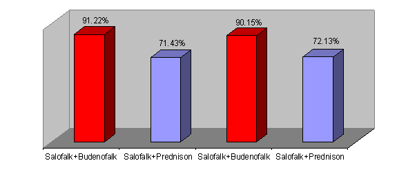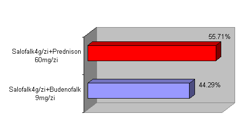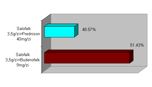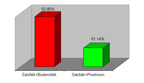1. La bolnavii cu boala Crohn tratati cu Salofalk+Budenofalk s-a indus remisia la 92,86% din bolnavi in timp ce la cei tratati cu Salofalk+Prednison la 81,14% .