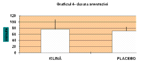 Nu au existat diferente statistice din punct de vedere al duratei anesteziei si operatiei în cele 2 grupuri.
