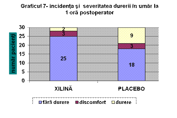 Intensitatea durerii postoperatorii în umar în primele 24 ore a fost semnificativ mai redusa în grupul XILINĂ