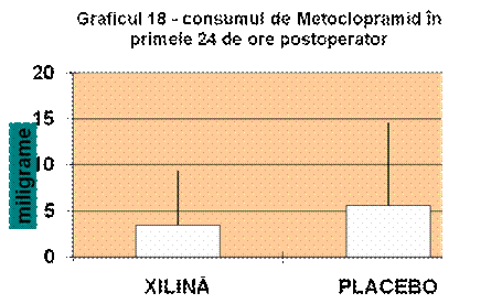 Consumul total de Metoclopramid în primele 24 de ore postoperator este redat în tabelul 14 si graficul 18: