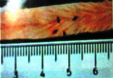 Figura 1 - Aspect macroscopic de leziune neoplazica colorectala indusa la soarece cu DMH dupa 12 saptamâni.