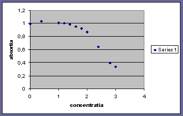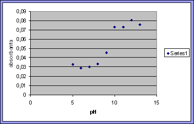 Pentru determinarea pKa-ului, folosim un program de tip excel reprezentandu-se grafic absorbanta in functie de pH, valoarea acesteia fiind determinata din grafic.