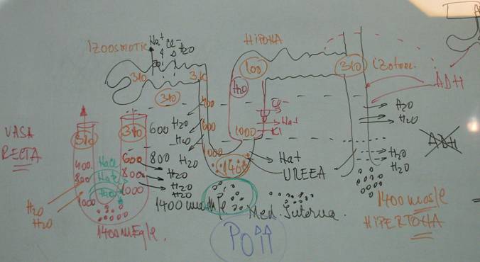 -in portiunea terminalaa tubului collector, la nivelul medularei interne, putina H2O se poate reabsorbi in tub si in absenta ADH => se explicaca in absenta ADH, 18-20 l urina/24 h se elimina