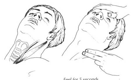executata simultan cu verificarea respiratiei, de asemenea timp de 5-10