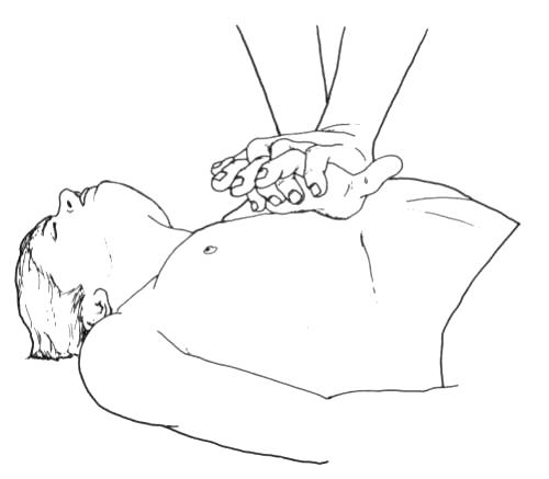 Cu victima asezata pe spate pe un plan dur se localizeaza punctul de compresie