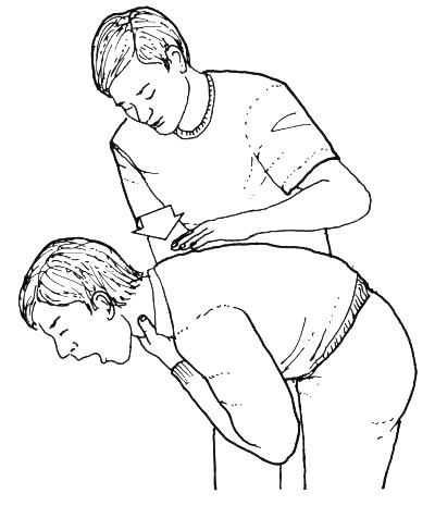 Daca victima devine inconstienta, întindeti-o pe pamânt si aplicati aceeasi manevra, încalecând picioarele victimei. Reperati locul, asezând podul palmei la mijlocul distantei dintre ombilic si apendicele xifoid. Asezati cealalta mâna peste aceasta (ca la masajul cardiac) si faceti compresiuni cu miscari bruste în adâncime si în sus.