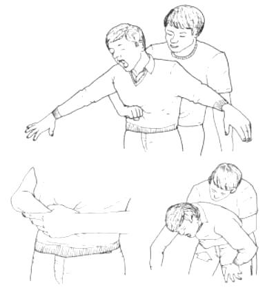Apropiati-va de victima din spate, cuprindeti-l pe sub brate, îndepartati