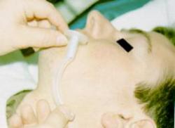 Introducerea pipei Gedel în cavitatea bucala se face tinând pipa cu concavitatea în sus. Când vârful pipei atinge bolta palatina (cerul gurii) se roteste 180 de grade si se continua înaintarea pâna ce capatul extern ajunge la nivelul arcadelor dentare.