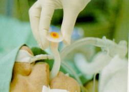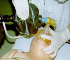Cu capul asezat în hiperextensie se aplica partea îngusta a mastii pe baza nasului, plasam ferm masca pe fata si o mentinem ferm cu degetele de o parte si de alta a orificiului mastii cu ridicarea concomitenta a mandibulei cu celelalte degete. Balonul de ventilatie