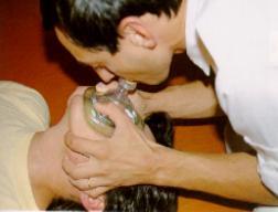 Îngenuncheati lânga pacient. Cu capul victimei în hiperextensie se mentine gura