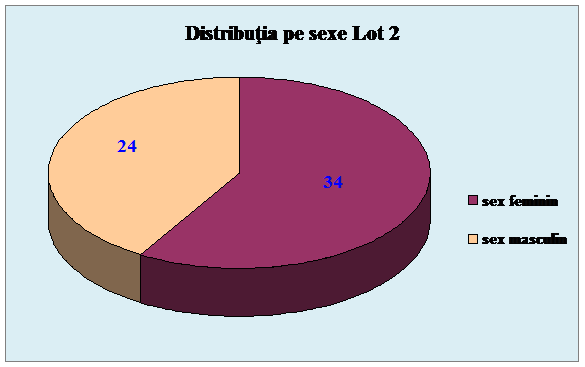 In lotul 2 au fost luati in studiu 58 pacienti, dintre care 34 sex feminin, 24 pacienti de sex masculin.