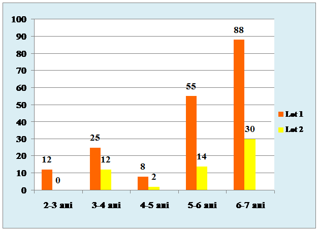 Repartitia pe varsta a fost urmatoarea, pentru fiecare lot luat in studiu: