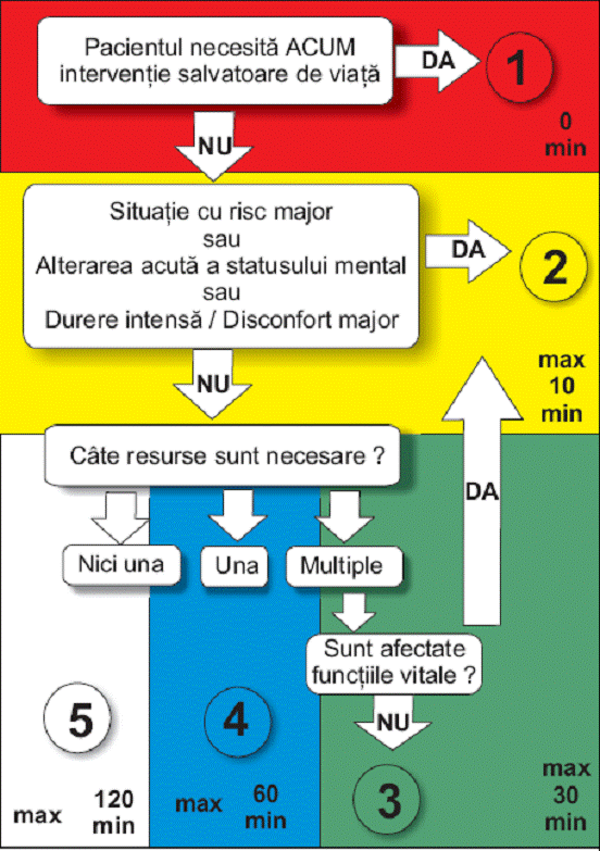 "Triajul este un sistem de evaluare si clasificare a pacientilor care se prezinta in structurile de primire a urgentelor in vederea stabilirii prioritatii si a nivelului de asistenta medicala necesara".