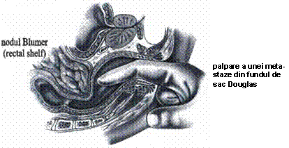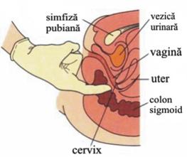 - spre lateral: spinele si tuberozitatile ischiadice, limfonodulii iliaci interni (daca sunt mariti), ingrosari patologice ale ureterului sau bombari ale fosei ischiorectale in procese patologice localizate la acest nivel.