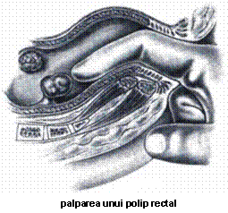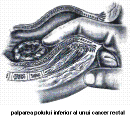 - la final, se cere bolnavului sa contracte musculatura abdominala (similar efortului de defecatie), gest care ofera posibilitatea explorarii a 2-3 cm suplimentari de rect (eventual, se realizeaza acest lucru in pozitia „stand pe vine” a bolnavului);