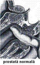 Prostata = glanda anexa aparatului genital masculin, situata in spatiul pelvisubperitoneal, sub vezica urinara. In lungime de circa 2.5 cm, prezinta 2 lobi intre care exista un sant median. Poate fi palpata pe peretele anterior al rectului, prin tuseu rectal.