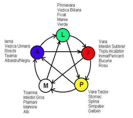 deasemenea si influente reciproce ale dinamicii celor Cinci Elemente.