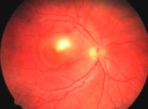 Fig. 13. Granulomul retinian posterior Fig. 14. Granulomul retinian Granulomul retinian care nu asociaza o endoftalmita severa, apare