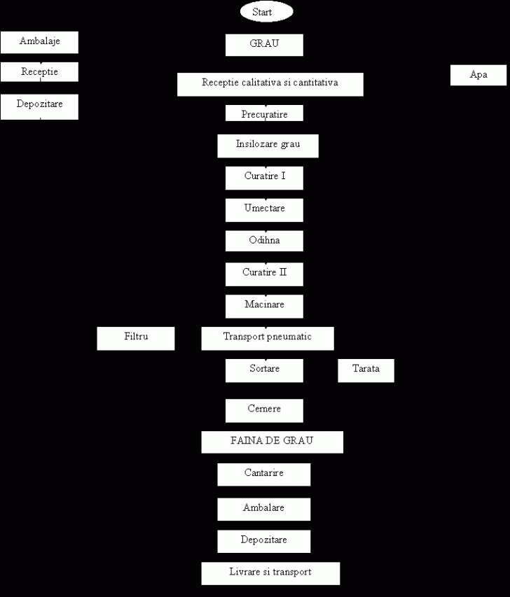 4. Descrierea procesului tehnologic de obtinere a produsului"Faina de grau ambalata de 1 kg"