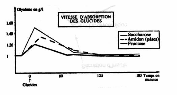 Experienta a aratat ca absorbtia glucidelor, indiferent de care sunt (cu molecula simpla sau complexa) are loc in aproximativ 30 minute dupa ingestie.