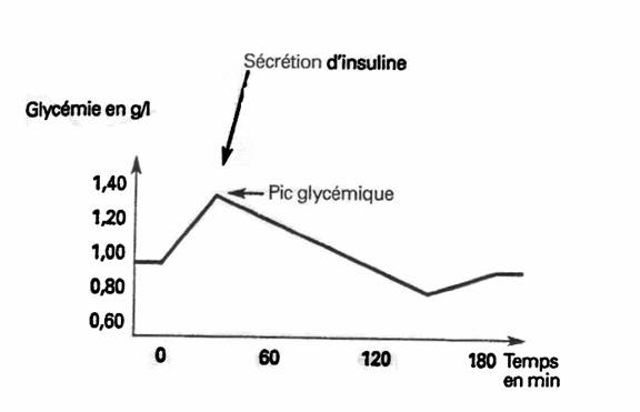 In timp ce mancam o glucida (zahar, cartofi, cereale, legume uscate, fructe..), aceasta se transforma intr-o anumita cantitate de glucoza, asa cum am vazut mai devreme. Aceasta glucoza care traverseaza bariera intestinala se regaseste intr-un prim timp in sange. Are deci ca efect cresterea glicemiei. Dar aceasta situatie nu este decat tranzitorie. Dupa ce absorbtia glucozei a fost realizata integral (o jumatate de ora aproximativ dupa consum), se atinge ceea ce numim „varful glicemiei”. Acesta este momentul in care unul din organele cheie al metabolismului, pancreasul, secreta un hormon: insulina (vezi schema in continuare).