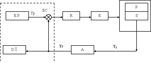 În functie de rezultatul compararii: Xa = Tp - Tr, regulatorul (R) va comanda elementului de executie (E), astfel ca acesta sa determine evolutia temperaturii produsului (P) conform celor implementate în elementul de prescriere (E.P.), în sensul realizarii conditiei Tr = Tp.