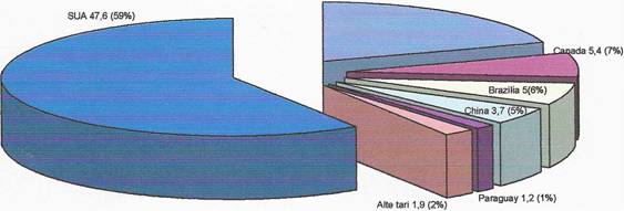 FIG. 2 - Suprafata cultivata in lume in anul 2004 cu plante modificate gnetic