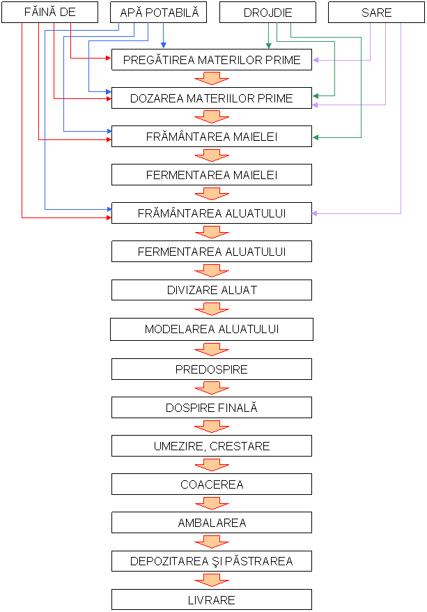Materiile prime folosite la prepararea painii sunt: faina, apa, drojdia si sarea.