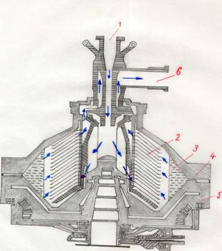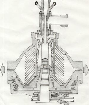 Sectiune prin toba unui curatitor centrifugal, cu evacuare automata a namolului