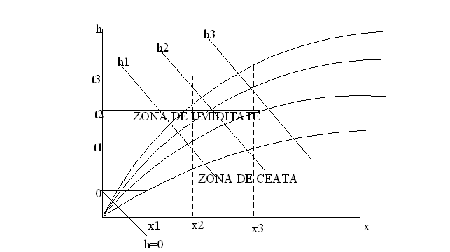 Umiditatea relativa a punctului de roua este totdeauna pe curba ζ=100%.