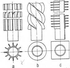 Suprafata de schimb de caldura īn aceste schimbatoare de caldura poate fi formata nu numai din tevi netede, ci si din tevi cu nervuri (fig.3). Ca si īn alte constructii, tevile cu nervuri se folosesc pentru egalizarea conditiilor schimbului de caldura de ambele parti ale suprafetei de schimb de caldura. Lichidul mai vāscos, la care coeficientul de transfer este mai mic , circula pe partea cu nervuri, adica īn spatiul dintre tevi.