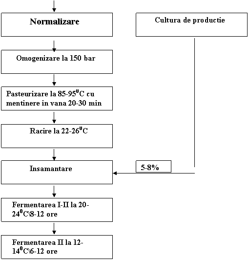 In Romania,se produc si se comercializeaza fregvent urmatoarele produe lactice acide:iaurt,lapte batut,lapte acidofil,sena si chefirul.Avantajul incontestabil pe care il prezinta produsele lactate acide rezida in faptul ca se analizeaza de organismul uman mult mai repede decat laptele integral datorita peptonizarii proteinelor din lapte in timpul procesului de coagulare.Drept materie prima in obtinerea produselor lactate acide se foloseste laptele de vaca,de bivolita,de oaie,separate sau in amestec,dar predomina laptele de vaca integral,normalizat sau smantani