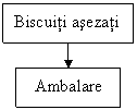 o produse ambalate in vrac, deci direct in ambalajele de transport: lazi de lemn sau cutii de carton; aceasta solutie se aplica in special in cazul biscuitilor simpli, cu o mare rezistenta mecanica.