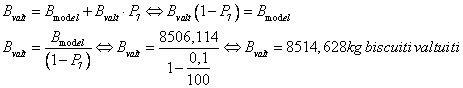 M = cantitatea de materii prime si auxiliare folosite la prepararea aluatului, fara apa si lapte, in kg.
