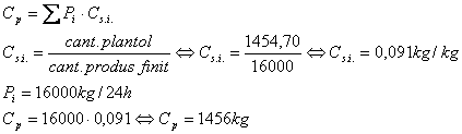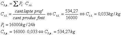 in care: Pl.p. = cantitatea de lapte praf ce se depoziteaza, kg