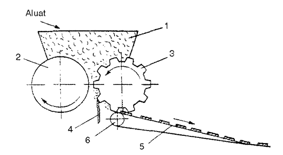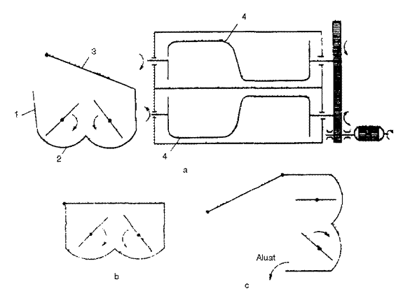 prelucrat ajunge in palnia de alimentare (1), de unde este preluat de perechea