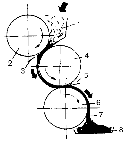 de valturi (2) - (4) si este presat pana este transformat intr-o foaie subtire.