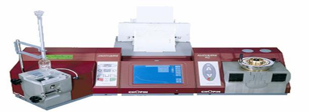 a) &nbs 343b11d p; farinograful in sine, alcatuit dintr-un malaxor cu manta cu apa, un sistem de inregistrare a consistentei aluatului sub forma de farinograme si o biureta (I);